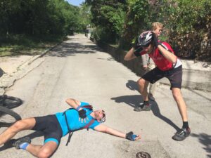 Quinta tappa? L’iconica salita impossibile (video)! Già nell’aria si sentiva la musichetta dei Muppet Show quando è successo l’imprevedibile. Senza che Mr. Orange se ne accorgesse, sotto l’impeto dello sforzo e della concentrazione per la salita, il Lupo di Muggia ha sferrato il suo attacco al polpaccio del malcapitato.
