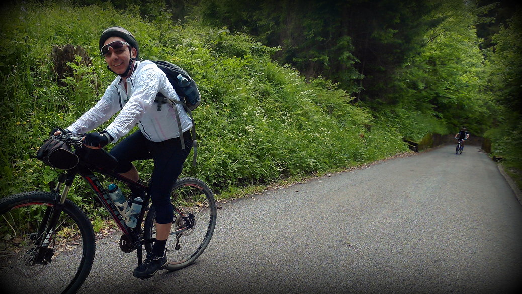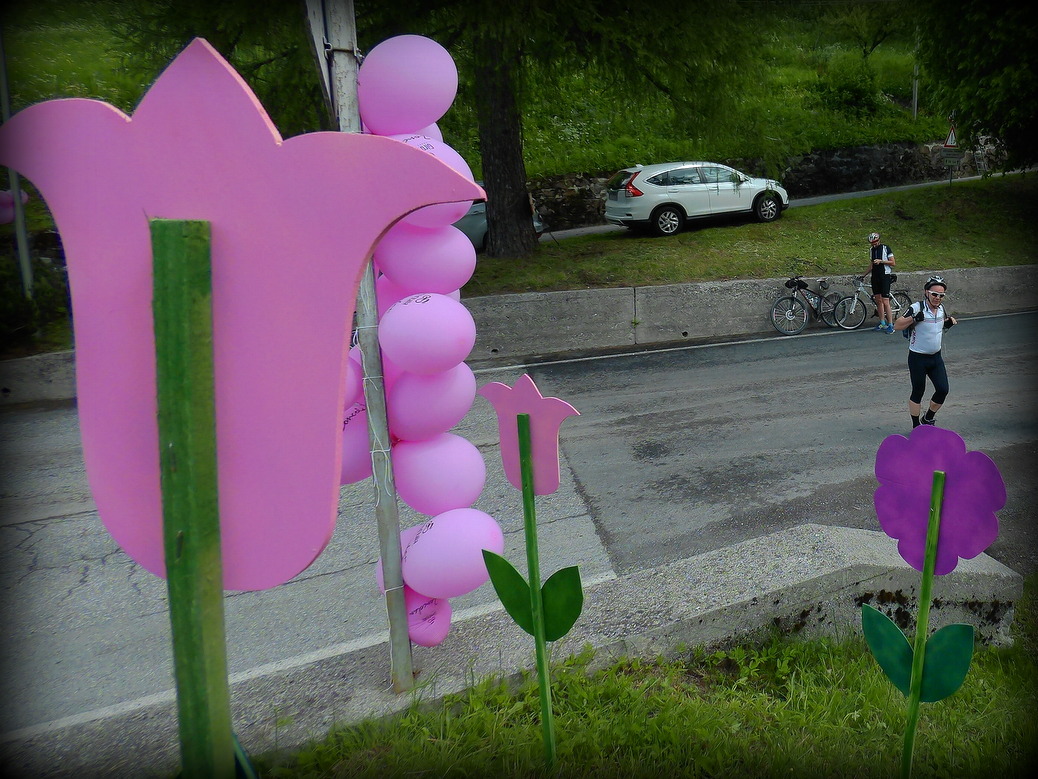 Max non molla mai. Mulinando come Froome, macina e supera podisti e ciclisti.