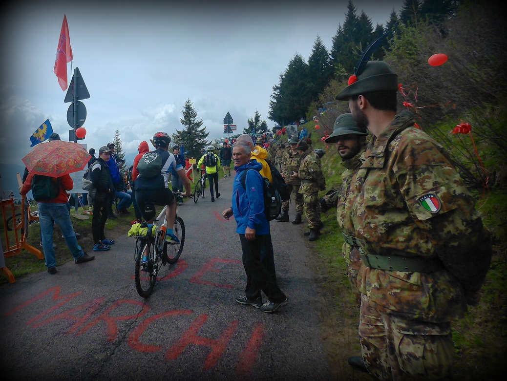 Invece degli angeli (e qualche angelo in tutina attillata c’era), troviamo alpini e volontari di protezione civile che presidiano il traguardo meglio di Fort-Knox.