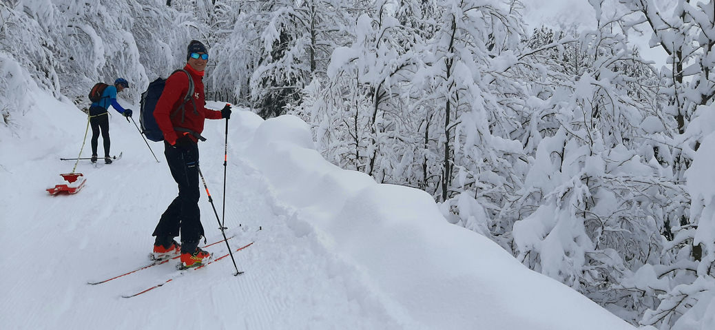 Siamo felici come bambini, praticamente soli a sverginare la neve intonsa.