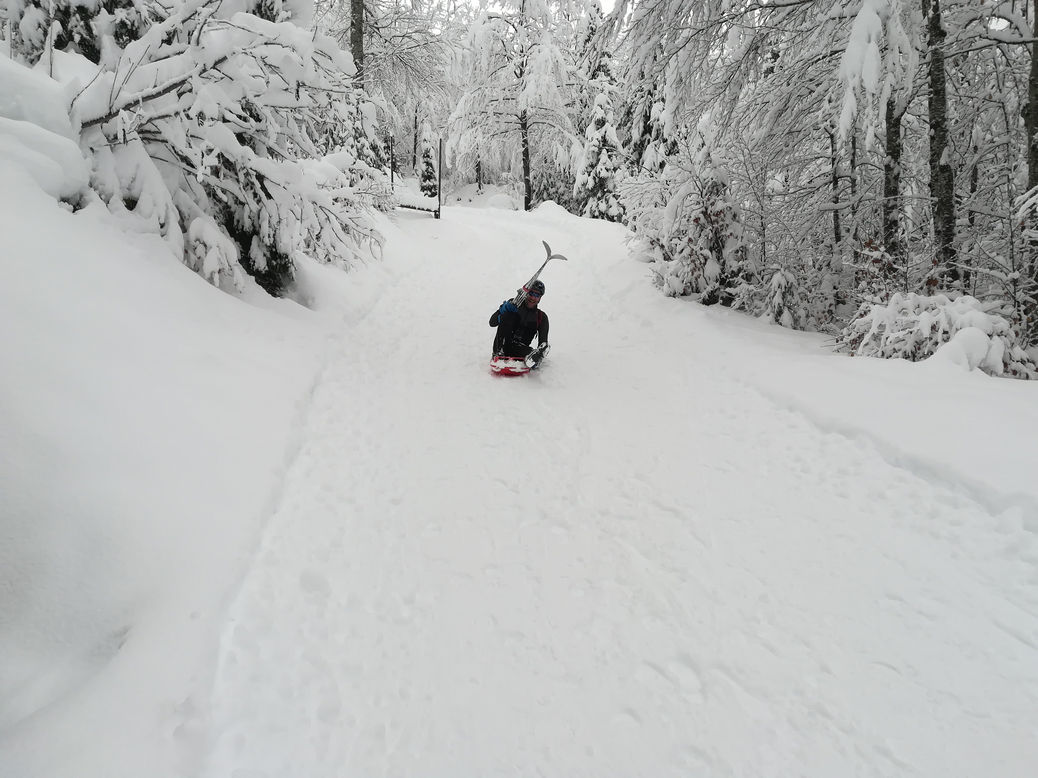 Incrociando ora in discesa molte più persone di qualche ora prima. Le quali, prudenti ma ilari, si scansano al passaggio dell’armato e zigzagante bobbista.