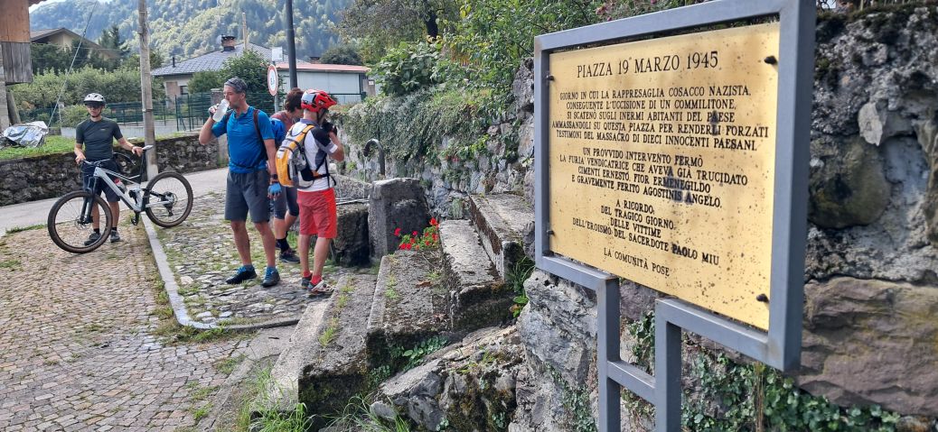 Tornanti, salita, asfalto, salita, tornanti. Fino al paese di Fielis. Luogo di ricordi bellici e di primi amori.